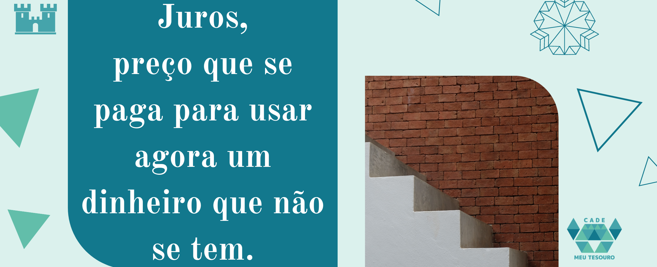 - Entender como os juros compostos atuam de forma positiva (nos investimentos) ou negativa (nas dívidas, empréstimos e financiamento), aqui falamos disso: Juros, sem ele o crédito-nem os investimentos existiriam