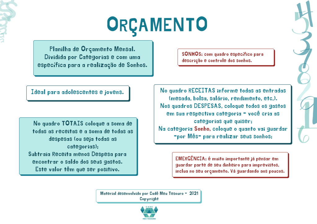 É muito fácil encontar planilhas de orçamento direcionada a audultos. Mas e os jovens, adolescentes? Ensinar e Aprender sobre Educação Financeira é – e deve ser – para todos, independentemente se é criança, jovem ou idoso. Pensandos neles criamos esta planilha – simples – voltada para este público para que já se acostume a ser organizar financeiramente.