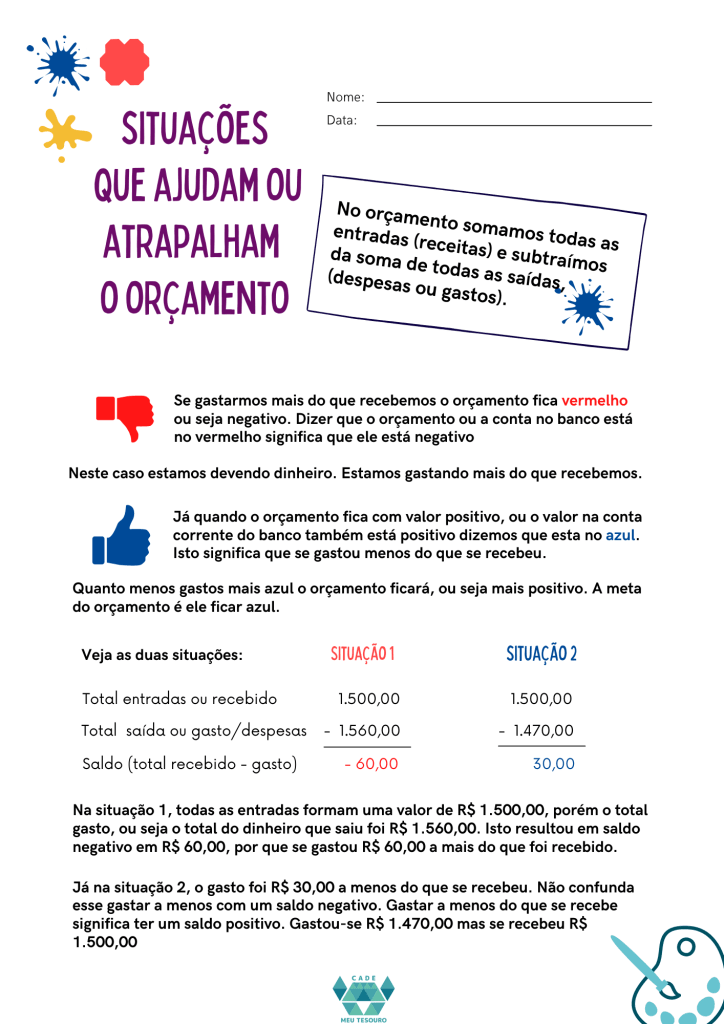 Aliás o que significa ficar no vermelho ou no azul? Nós também explicamos nesta atividade.