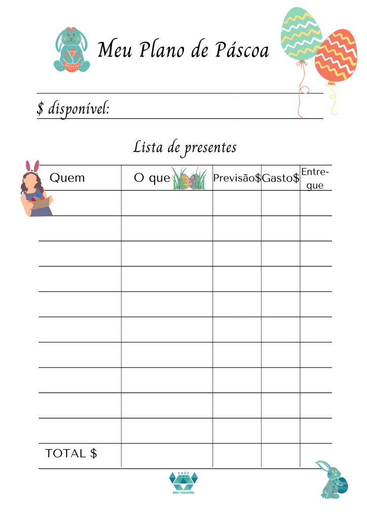 Defina o quanto de dinheiro você tem disponível para gastar com a Páscoa sem comprometer o pagamento as contas do dia a dia e sem atrapalhar as outras metas.