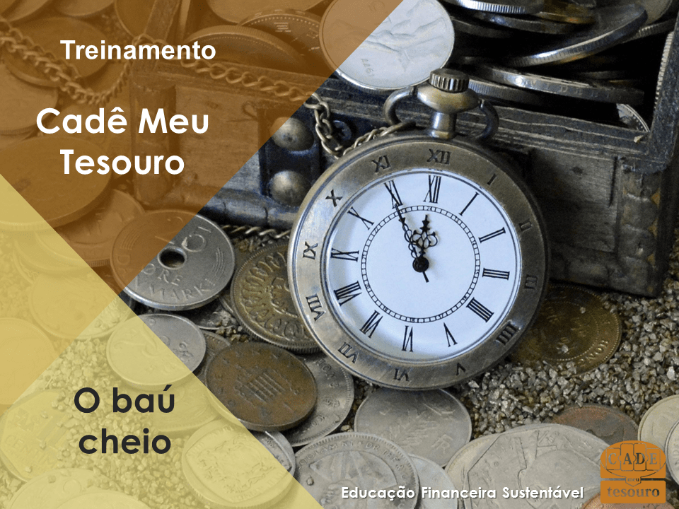É um curso de Educação Financeira Cadê Meu Tesouro que proporciona, com muitas dinâmicas e estilo participativo, despertar, conscientizar e provocar mudanças comportamentais.